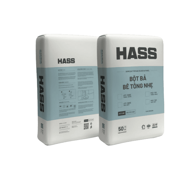Bột bả skimcoat HASS là loại bột bả mỏng lên bề mặt gạch AAC và tấm tường ALC của HASS, tạo bề mặt mịn trước khi sơn, giúp bảo vệ tường và làm cho lớp sơn được bền hơn.