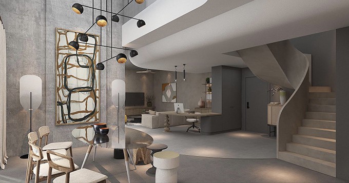Với phong cách wabi-sabi, ta luôn tìm thấy cái đẹp hoàn hảo trong sự không cân xứng với những đường cong trên texture sơn hiệu ứng xi-măng. Mang đến sự mềm mại cho những bức tường tưởng chừng vô cùng thô cứng.